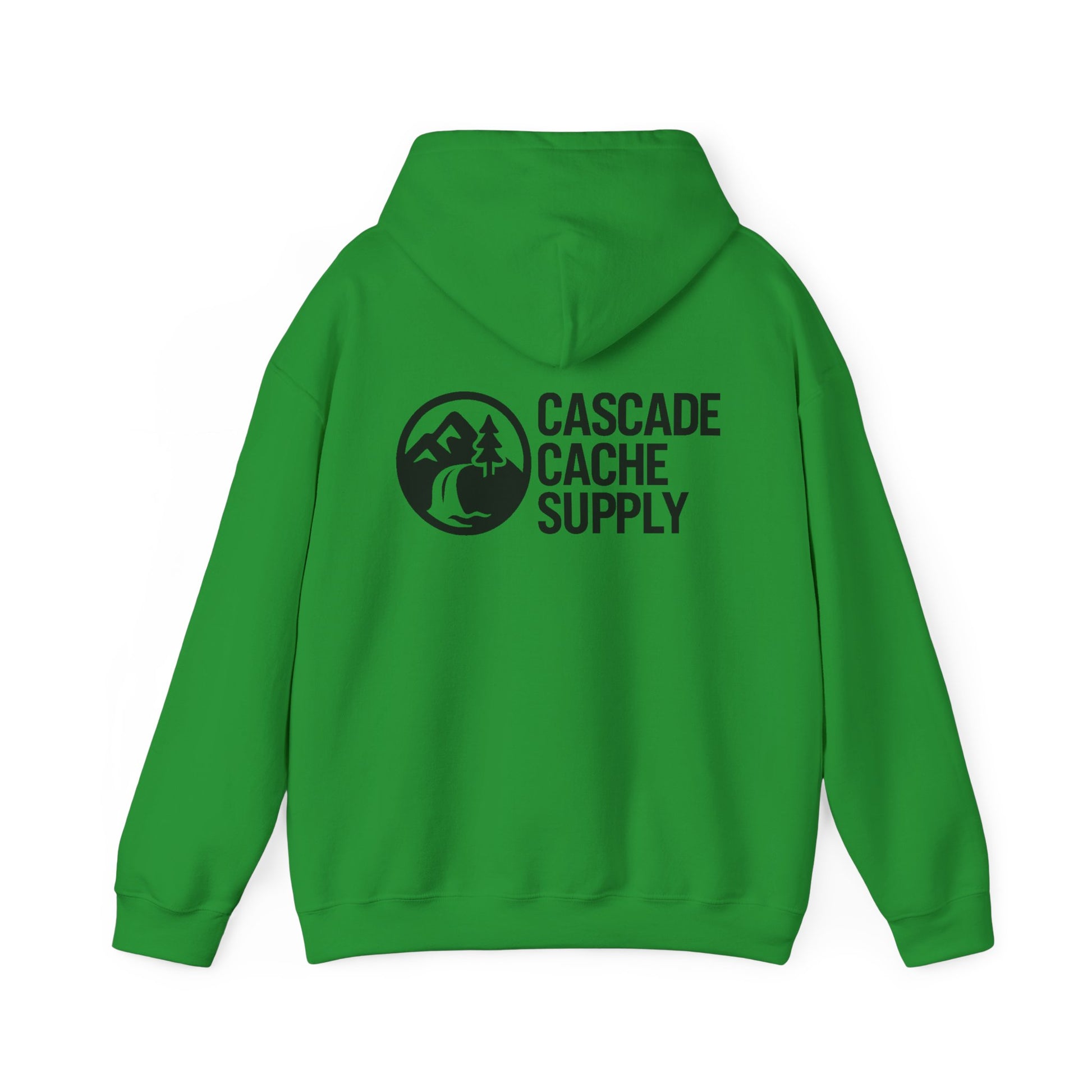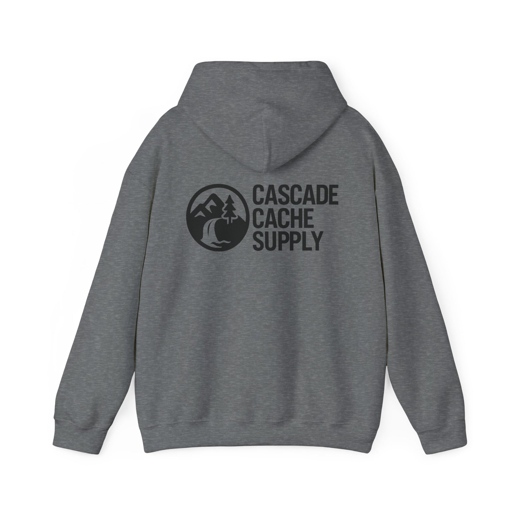 Show the world your love for Cascade Cache Supply with the CCS hoodie. Keeps you warm on cold caching mornings. Convenient storage pocket for large items. Drawstring hood for surprise blizzards.